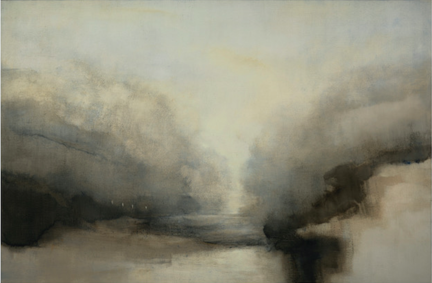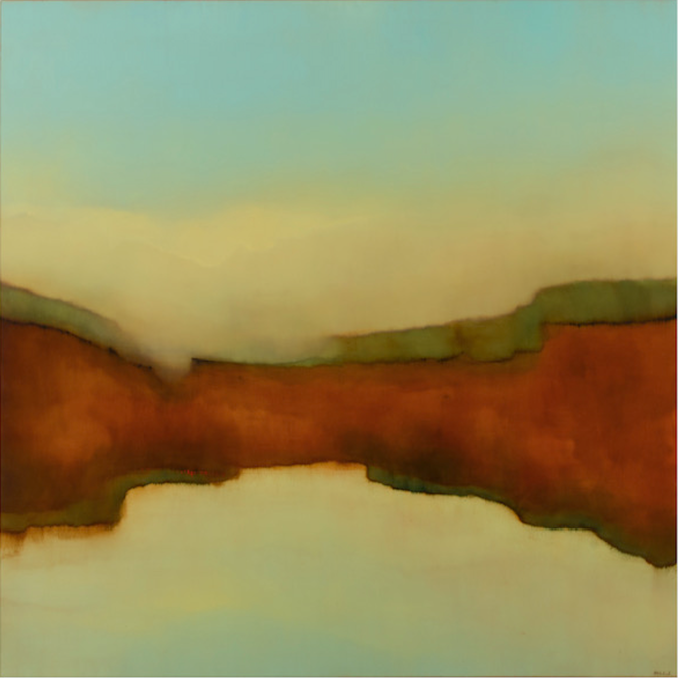 I studied on a general fine art course at Bristol Art College from 86-89. This gave me a solid grounding in painting and printmaking. At this point it was printmaking that was at the fore. This lead me to undertake a Masters Degree in Printmaking at the Royal College of Art from 89-91 working in intaglio and more and more in lithography. The direct nature of lithography also started to draw me back to painting as well. Printmaking involves a process which gives a working structure. To some degree this has found its way into my approach to painting from the preparation of a painting surface, hand wiping etching plates to hand wiping paintings. The parring down of anything that is insignificant to the bare essentials for the image to work. Early influences, and these influences have stayed with me until present day, are artist such as Cy Twombly, Robert Motherwell, Milton Avery to Vermeer, Turner and Rembrandt. Elements of all have been introduced into my work. With the Rembrandt’s it was the backgrounds allowing the paintings to emerge from dark to light. Turners handling of atmosphere which lived in the paintings and the gestural from Twombly and Motherwell.
